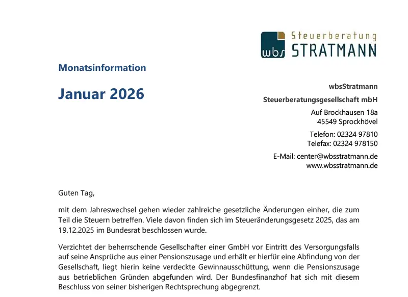 Aktuelle Informationen as dem Steuer- und Wirtschaftsrecht finden Sie hier: [...]