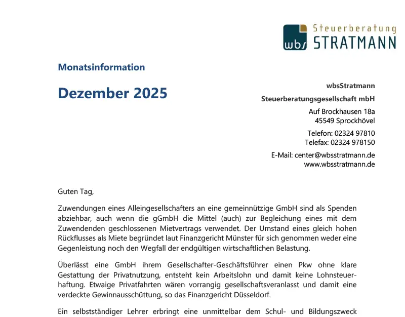 Aktuelle Informationen as dem Steuer- und Wirtschaftsrecht finden Sie hier: [...]